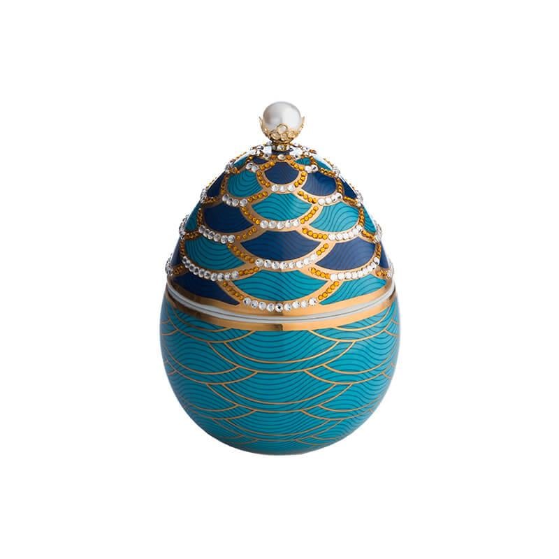 İnci pulu desenli kokulu mum. Seramikten yapılmış ve 18 ayar altın ve yapay elmaslarla elle boyanmış. Adını Bois de Russie'den alan, esintili bir koku sunan bir hazine. Koku, en iyi parfümcüler tarafından özenle tasarlandı. İnci pulu desenli bu mum, zarif kokusunu dumanlı bir kokuyla baştan çıkaracak. Bu özel mumla, detaylar ve zarafetle dolu bir geçmişe yolculuk edin. 220 g. Yanma süresi: 55 saat. Renk:Mavi