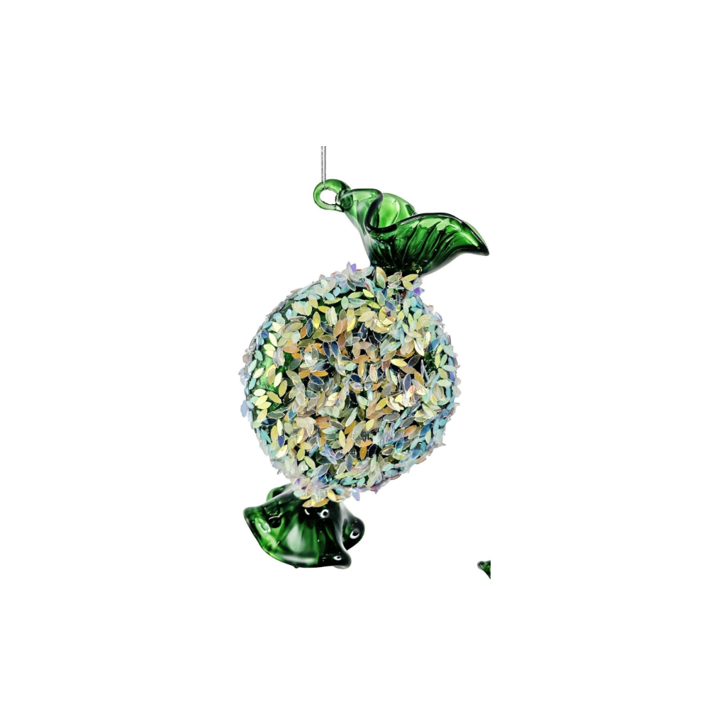 Shishi Glass Candy Lined Shiney Green Glitter Yılbaşı Ağaç Süsü