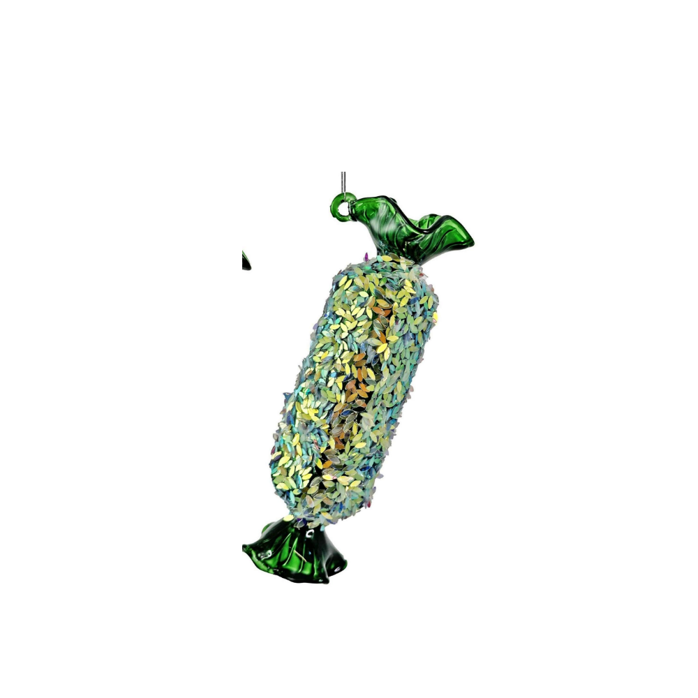 Shishi Glass Candy Lined Shiney Green Glitter Yılbaşı Ağaç Süsü