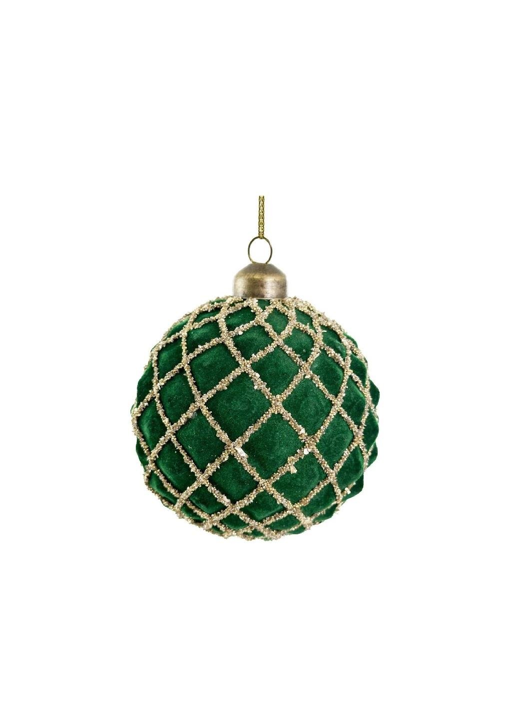 Shishi Glass Velvet Ball Dk Green Silver Glitter Yılbaşı Ağaç Süsü
